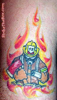 Country: United States State: Virginia Fire Dept: Hampton Fire & Rescue Year Started in Fire Service: 2004 Rank: Firefighter (private) Description: Tidewater Regional Fire Academy Class of 92. This was our class design. "Git R Done" Tattoo Location: Right Bicep Year Inked: 2004 Studio: Blue Horseshoe Tattoo Artist: Mike Wexler |