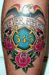 Country: United States Fire Dept: Miami Beach Fire Rescue State: Florida Years on job: 4 Rank: Firefighter (private) Description: This tattoo was done on the T.V. show Miami Ink, by artist Chris Garver. I got this tattoo as a lasting memorial, in honor of our fallen brothers. we should never forget the sacrifice they made..... I WILL NEVER FORGET. Tattoo Location: L. Calf Year Inked: 2005 Studio: Miami Ink Artist: Chris Garver |
