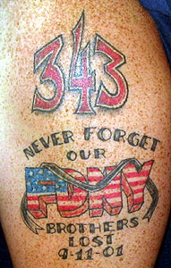Chad Letterle Country: United States Fire Dept: Lincoln Rural Fire Dept. State: Illinois Years on job: 12 rank: Assistant Chief Description: I had an Instructor that was a member of Rescue 18 in New York. His name was Andrew Fredericks and he died in Tower 2, WTC. I never thought of getting a tattoo until then. I wanted to do something to honor him and our 342 other brothers that we lost. Tattoo Location: left arm Studio: The Artist's Edge Artist: Permanent Mark |
