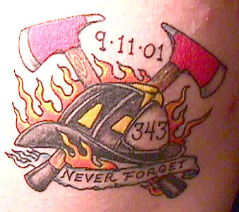 Steve Miller Country: United States Fire Dept: Town of Salem Fire and Rescue State: Wisconsin Years on job: 9years rank: Lieutenant Description: i have been a EMT since 1998. just became a FF last year and wanted to show my respect to all our fallen brothers from 9/11 who never had a chance. Tattoo Location: upper right arm Studio: Polly's Tattoo Studio Sturgeon Bay WI.s Artist: Polly Sills |