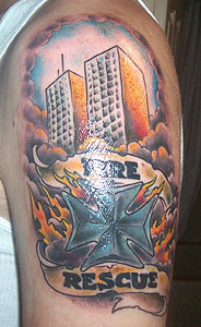 Country: United States Fire Dept: Meshoppen Volunteer Fire Dept State: Pennsylvania Years on job: 5 rank: Firefighter (private) Description: I Know people that lost family in the towers (FDNY) & (NYPD) both. Tattoo Location: Left Shoulder Studio: Slingin' Ink Scranton,Pennsylvania Artist: Eligsa |