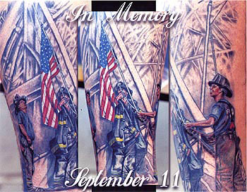 Lev Torgerson Country: United States Fire Dept: New Haven State: Connecticut Years on job: 9 rank: Firefighter (private) Description: Stared in October 2001, finished in April. 14 total hours. Tattoo Location: Right Leg Studio: Dark Side Artist: Julio Rodriguez |