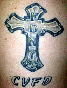 Tom Woerdeman "Pirate Steve" Country: United States Fire Dept: El Paso County Sheriff's Office Wildfire Crew State: Colorado Years on job: 1 rank: Firefighter (private) Description: The is a memorial for the brothers lost in 9/11 and hope they're never forgotten. United Brotherhood. Tattoo Location: upper arm Studio: Art With A Pulse Artist: Dale Ships |