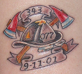 William Tweedy Country: United States Fire Dept: Vallejo Fire Department State: California Years on job: 24 Years Rank: Firefighter/Engineer/Fire Investigator Description: My tattoo is a tribute to the 343 that made the ultimate sacrifice on 9-11-01; the 077 on the helment is my badge number. |