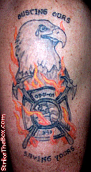 Lee Foster Country: United States State: Texas Fire Dept: Pantex Plant Years on job: Certified since 2001 Rank: Firefighter (private) Description: Kids wanted to give me a Fathersday present that was FOREVER, this is what I chose.The Tat says it all. The other arm signified my Paramedic status, needed a fire related tat (thanks Caleb for the awsome detail) Tattoo Location: Right upper arm Year Inked: 2006 Studio: Music Box Artist: Caleb |