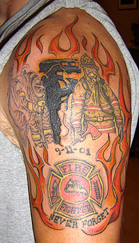 Country: United States Fire Dept: zoneton fire protection district State: Kentucky Years on job: 6 Rank: Firefighter (private) Description: several pictures I wanted on me and a cover up. designed by artist Tattoo Location: left arm and shoulder Year Inked: 2006 Studio: Ink Masterz Artist: Scott Leslie |
