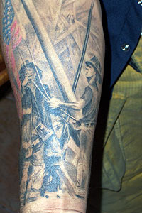 Country: United States Fire Dept: Compton Fire Department State: California Years on job: 2 Rank: Firefighter (private) Description: This tattoo is a work in progress. I am dedicating my whole right arm in rememberce of 9/11 Tattoo Location: Right Forearm Year Inked: 2005 Studio: So Cal Tattos Artist: Carlos Torres |