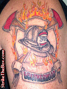 Country: United States Fire Dept: Mt Pleasant fire State: Wisconsin Years on job: 17 Rank: Firefighter (private) Description: I have had this idea for a while so I took a picture of my leather helmet to Diggers Den in Elkhorn Wisconsin and had him draw it up. Tattoo Location: right upper arm Year Inked: 2006 Studio: diggers den Artist: Bear |