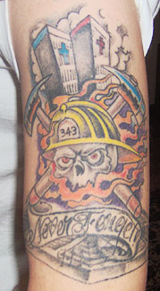 name: Michael Myers Country: United States Fire Dept: Saint Robert Fire & Rescue State: Missouri Years on job: 2 Rank: Other Description: I got my tattoo because all of the fallen firefighters in the line of duty and 9-11 Tattoo Location: left arm Year Inked: 2005 Studio: Top Gun Tattoos Artist: Biscuit |