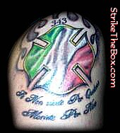 Country: United States Fire Dept: Branford Fire Department State: Connecticut Rank: Firefighter (private) Description: I've been a part of the fire department for just over 2 years now. I've been wanting to get a tattoo for a while now and wanted something to symbolize the fire department, my heritage, and some sort of rememberance of 9-11, so I went to a local tattoo parlor and this is what the artist drew up, and it was perfect, so i got it. Tattoo Location: right arm Year Inked: 2006 Studio: Studio Zee Artist: David |