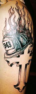 name: Mike Reimer Country: United States Fire Dept: Fresno County Fire State: California Years on job: 3 Rank: Firefighter (private) Description: Its a cover up of a medical cross, i had just begun my EMT training when 9-11 happened. I was doing a ride along with a city Tattoo Location: Left Arm Year Inked: 2005 Studio: Gangster Ink Artist: Nygel