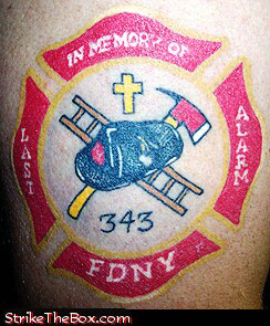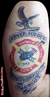 Country: United States Fire Dept: Wilson Fire Co, Station 20 State: Pennsylvania Years on job: 18 Rank: Assistant Chief Description: Wanted to have this tattoo as a memorial for fellow brothers who were lost, and that it will never be forgotten. Tattoo Location: arm Year Inked: 2006 - update inked in 2007 Studio: 570 tattooing co, Wilkes-Barre Pa. Artist: Eric |