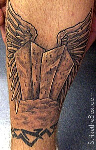 Country: United States Fire Dept: RHVFD Co.4 State: Virginia Years on job: 3 Rank: Lieutenant Description: I had the twin towers placed in the clouds with Angels wings to show that they will be watched over forever. Tattoo Location: Right Leg Year Inked: 2006 Studio: Island Tattoo's Artist: Joey |