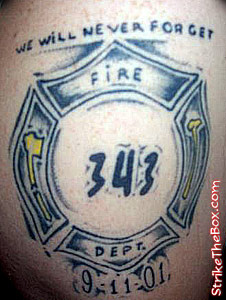 The bent halligan bar and the broken axe show symbolism of the Tattoo Location: Right bicep Year Inked: 2006 Studio: private artist |