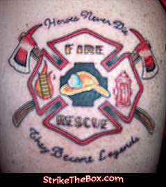 Country: United States State: Georgia Fire Dept: City Of Pelham Georgia Year Started in Fire Service: 1991 Rank: Firefighter (private) Description: This was inked for all brothers and sisters in the fire services and a tribute to the one's that lost there lives in the line of duty !!! Tattoo Location: left upper forearm Year Inked: 2007 Studio: The Tattoo Shop, Albany Georgia Artist: Travis White |