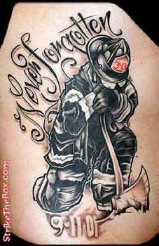 Country: United States State: North Carolina Fire Dept: Lebanon Fire & Rescue Year Started in Fire Service: 2004 Rank: Firefighter (private) Tattoo Location: Rib cage Year Inked: '07 Studio: AREA 51 Artist: Sean Beck |