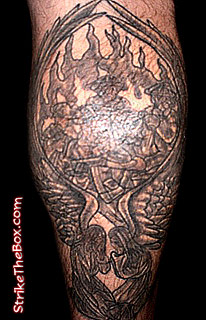 Country: Canada State: Ontario Fire Dept: Sarnia Fire/Rescue Year Started in Fire Service: 1991 Rank: Firefighter (private) Description: I struggled for a number of years to come up with a fitting design to honor my brothers who died on 9/11 finally last year an artist made a sculpture in our area to honor fallen firefighters and I knew I found it. The artist had to change some things from the original sculpture, there was just way to much detail within the angels wings to fit on my calf, but I think the end result was well worth the wait. I can't wait to get my second, third, etc. tattoo. Tattoo Location: Right calf Year Inked: 2007 Studio: Snap Dragon Artist: Jeremy |