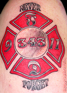 Country: United States Fire Dept: Sister Lakes Volunteer Fire Department Year Started in Fire Service: 2001 Rank: Firefighter (private) Description: 9/11 is something very important to me, as it is to many others. I believe our brother & sisters gave a great sacerfice that day. And this is my way of paying Tribute to those who fought for everyone. Tattoo Location: Upper Left Shoulder Year Inked: 2007 Studio: Touch of Color II - St. Joseph Michigan |