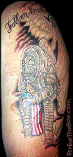 Country: United States State: Virginia Fire Dept: Hurt Vol. Fire Dept. Year Started in Fire Service: 1990 Rank: Firefighter (private) Description: I wanted a tattoo to show my support after 9-11 and my brother just joining the military it took me a while to find what I wanted once I found out what I wanted now I love it. Tattoo Location: entire upper left arm(sleeve) Year Inked: 2007 Studio: Forever Ink Artist: Travis Harris |