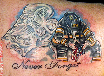 Country: United States State: Connecticut Fire Dept: CT Rank: Other Description: This is a replication of the snow angel/firefighter picture that has become popular. Tattoo Location: Right Back of Shoulder Year Inked: 2007 Studio: Sleepy Hollow Tattoo & Design Artist: Brandon Lattanzi |