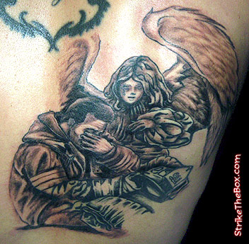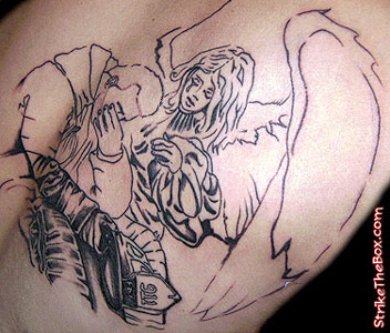 Country: United States State: North Carolina Fire Dept: Lemon Springs Year Started in Fire Service: 2003 Rank: Firefighter (private) Description: I have this puzzle and liked the pic. so I got the tattoo. It is not finished this is just the outline. I'm also going to add an angel on the other side. Tattoo Location: mid back Year Inked: Jan. 2008 Studio: Lady Luck Artist: Kate |