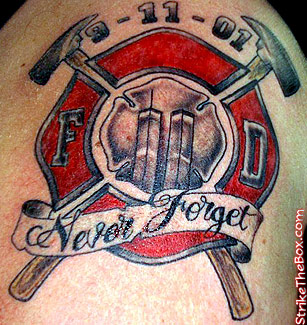 Country: United States Fire Dept: BWI Airport Fire Rescue/ Seat Pleasant VFC, MD Year Started in Fire Service: 1996 Rank: Firefighter (private) Description: A tribute to all those lost during 9/11. My next one may revolve around DC, but this is my NY tat for now. Tattoo Location: Right Arm Year Inked: 2008 Studio: Naked Art Tattoos - Odenton, MD Artist: Chris Lowe |