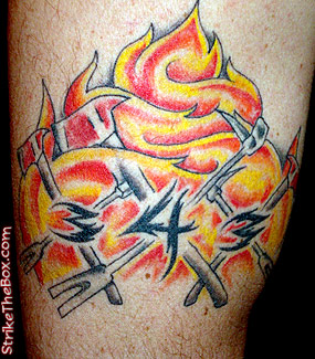 Country: United States State: Georgia Fire Dept: Fayette County Year Started in Fire Service: 1990 Rank: Firefighter (private) Description: The flames represent the dedication to the fire service. The tools represent My life as a truckie. The 343 is for all those that didnt make it home that day. Tattoo Location: Right arm Year Inked: 2008 Studio: Biz Tattoo Artist: Biz |
