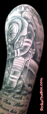 Mathew Bilts Country: United States State: Connecticut Fire Dept: Canton Vol. Fire and EMS Year Started in Fire Service: 2006 Rank: Firefighter (private) Description: I remember growing up always being around firefighters and running to the local fire station when the tones dropped so that I could see the trucks leave. When I was in high school, I sat there for the entire day and days after 9/11 watching as the events unfold, watching the firefighters going in and out and then seeing the towers collapse, killing all of those brave soles. Ever since then and since I became a member of my local fire department, I wanted to get a memorial tattoo. I finally went this past summer and got it done. Tattoo Location: Left Arm Year Inked: 2008 Studio: Greenman Tattoo Studio Artist: Jay Kelly |