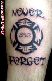 Joseph Michael "Mike" Brunner Country: United States Fire Dept: D.C.F.D. Retired Year Started in Fire Service: 8-10-92 Rank: Firefighter (private) Description: Always wanted to get a Maltese Cross and after 9-11 it just kinda made sense. Tattoo Location: Left Calf Year Inked: 2009 Studio: Gas Chamber Ink Artist: Chad Scherotter |