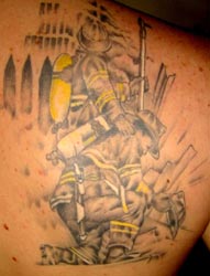 Jason A. Lameiras Firefighter/Paramedic, Rockdale County Fire Department, Georgia Tattoo done in June 2002 by Chris Huff, Ink Wizard Tattoos, Conyers, Ga.