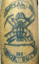 Lt. Brian S. Ashe Lowell Fire Department Lowell, MA Inked at: East Coast Ink Pelham, NH The banners read "Loyal to our Duty" |