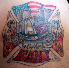 Bill Harris country: United States Fire Dept: Fire Department City of New York State: New York Years on job: 7 rank: Firefighter (private) description: A memorial to all the brothers who have fallen. studio: Staion 1 Tattoo artist: Chuck Bondo