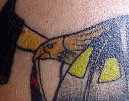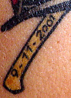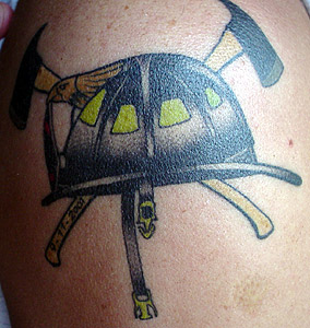 Here is another great tribute tattoo that honors the Brothers of the September 11th tragety. The collector of this fine tattoo is Mark Platt from the North Greece Fire Department, Rochester, New York. |