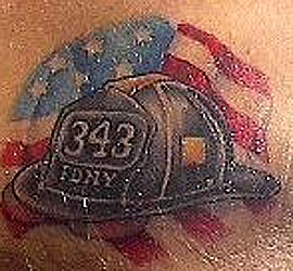 "Dale Harris 49 year old Fire Captain with South Metro Fire Rescue in Colorado Captain Harris is a 27 year fire service veteran. Ink Artist is Scottie De Ville from the th’ink tank in Lo-Do ( Lower downtown Denver). Scottie was a second place winner in a New York inking contest, representing the 911 disaster!" |