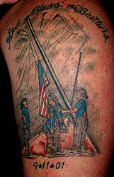 Tim Doane country: United States fire_dept: Marblehead Fire fd_state: Massachusetts years: 14 rank: Firefighter (private) desc: I got this done on Sept.28 2001. A friends uncle was killed at the W.T.C. from ladder 3 (Gerard Dewan), and at that point I knew that I want to have this done. Studio: Tony's Tattoo Studio Artist: Tony Plante