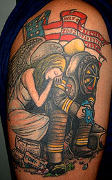Memorial Tat of our fallen brothers on 9-11 as well as the studio: Island Joe's in North Wildwood New Jersey artist: Joe Smith |