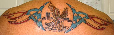 Country: United States Fire Dept: Bridgeview State: Illinois Years on job: 27 rank: Other description: I wanted a Tattoo that would reflect my belief in patriotism and also a memorial to our fellow F/F's who lost their lives on 9-11-2001 Tattoo Location: Upper Back Studio: FireHouse Tattoo Artist: Chuck |
