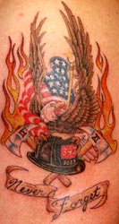 "My Name Is Sven Schievink and I work for the Federal Way Fire Department In Federal Way, Wa. ( Seattle Burbs) Ive been with the Dept 18 yrs." Work was done by Brian at the Tattoo Machine in Puyallup, Washington. |